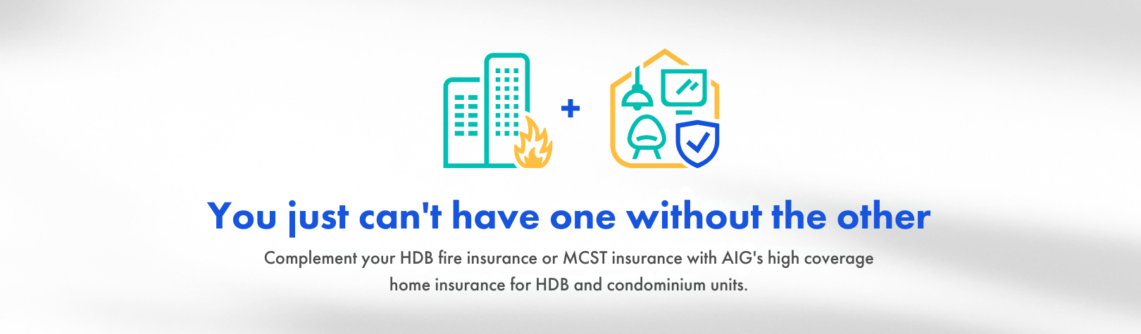 Note: 1 Household Contents refer to your interior decorations, fixtures and fittings installed and not provided by HDB or your condominium’s developer. Your furniture, furnishings, clothing and personal effects belonging to you or your Immediate Family or Domestic Worker permanently residing with you are covered. However, cash and currency notes are excluded from cover. 2 Building refers to your residence and fixtures and fittings provided by HDB or your condominium’s developer, based on current standards and specifications as defined by HDB or MCST. The common areas, fixtures and fittings added by you or the previous owner of the building, interior decorations, household furniture and fittings are excluded. The sum insured for building is dependent on the flat type and will vary from S$19,500 per annum for a one-room flat to S$100,000 per annum for an executive apartment. Details are specified in the policy terms and conditions.